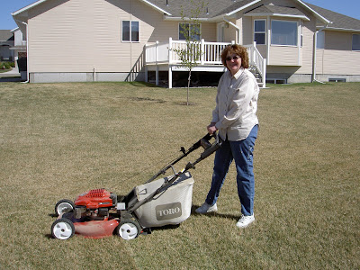 That's an awful BIG lawn to mow! Way to go sexy lady! What about a tractor? I think you guys could use one of those riding lawn mowers =D.