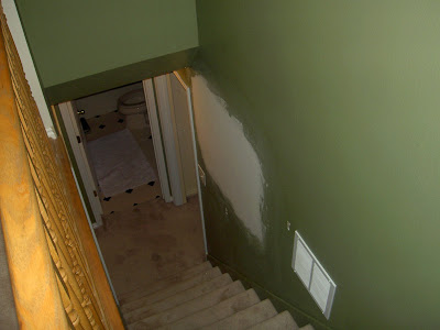 First on the list for this weekend was to repair the hole in the wall going down the stairs to the basement. It was left by the Mormon Moving Company.