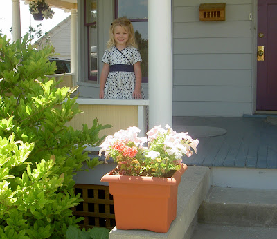 It was so hot the day Ben was blessed. We were so grateful that B&K had air conditioning. Here is a nice picture of Madison posing on the porch.
