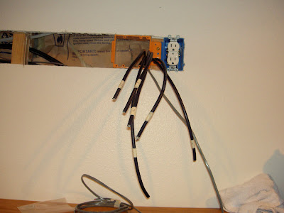 Cutting into the wall was a daring move. To date, I have pulled over 200 feet of cable into this wall and the rest of the room. Needless to say it has been a big job. Maybe I'll start putting it all back together tomorrow.