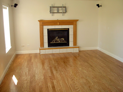 Well, it's getting closer. This is a picture of the room without the furniture. I still have the molding for the fireplace to finish and the transition at the doorway needs to be stained and varnished.