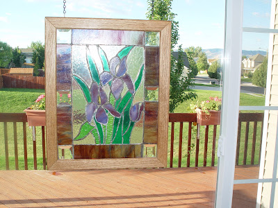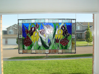 I'm posting these other pictures of Brian's ART so he can add it to his portfolio. We finally got the smaller stained glass piece hung in the dining room window. After multiple attempts at hanging it other places we decided this is the BEST place for it. It looks nice having both pieces of art in the same room.