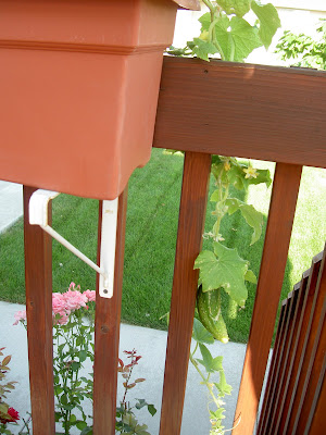 Check out how this awesome cucumbers are growing. We've had a lot of fun watching them develop. It's surprising how they can hang in the mid-air and not break the vines. You may need to click on the first image to enlarge it and find the 2 cucumbers growing. Tyler calls them nanas.